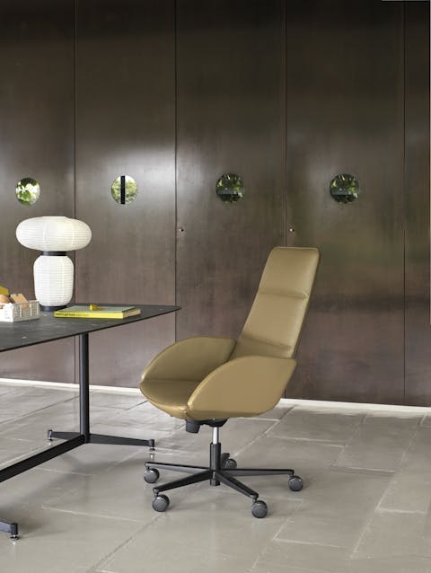 The horizontal stitching lines that run across the backrest show the thickness of the padding, while the variety of options and the chrome plated armrests make Amelie a refined and timeless design item.