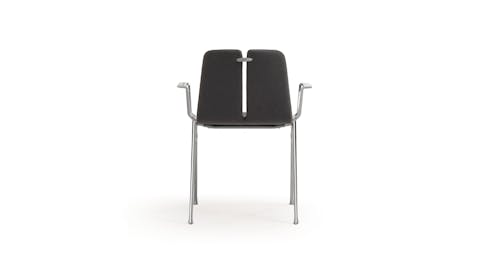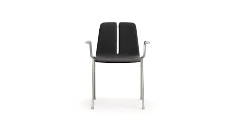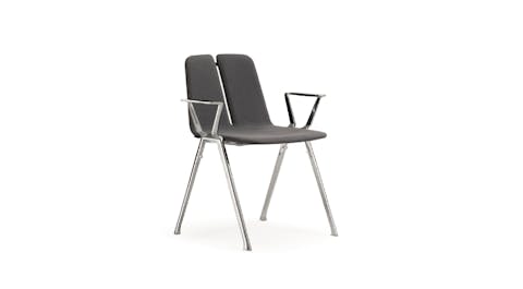 All elements are perfectly integrated in order to conceive original, practical, comfortable chairs suitable for residential, office and contract use. Several versions of Bridge can be created by matching the different structures, shells, and accessories available. A chromed plate can be mounted on the backrest to join the two parts, allowing a better grip of the chair. All bases are designed in order to grant stackability, different usage, and storage of the chair.