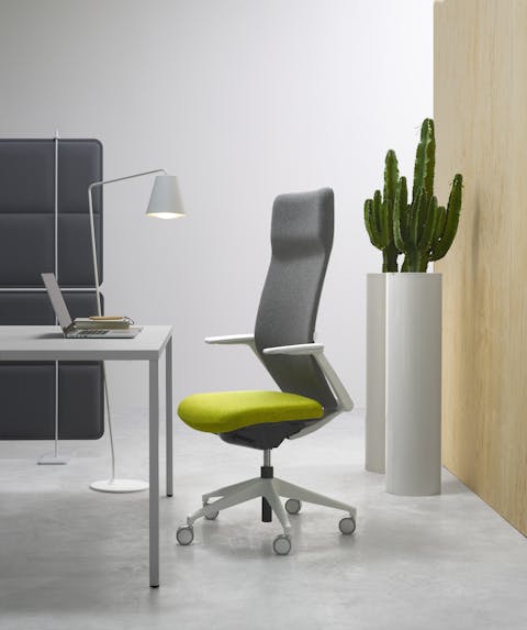 This collection’s soft lines are highlighted by the upholstered seat and backrest. Fabrics and leathers give