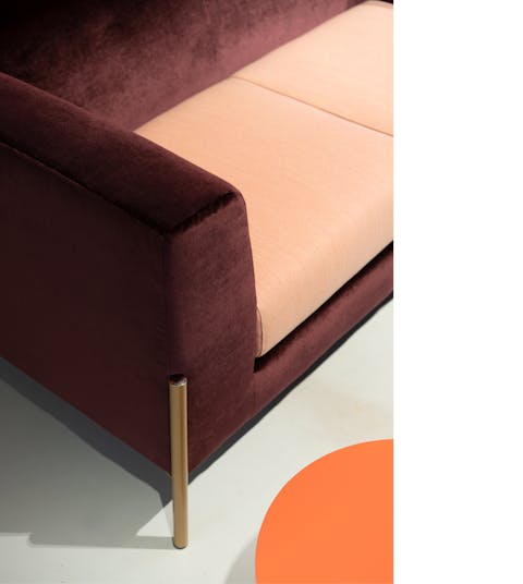 The frame is available in two different options: square silver-grey metal plate structure or wooden feet in natural or wengè finish. Armchair and sofas can be both customized on demand with special manufacturing as the use of different materials or colors. The single and the 2-seater armchair are included among our IN STOCK products (h. 72).