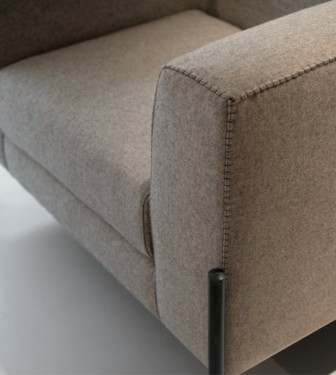 The frame is available in two different options: square silver-grey metal plate structure or wooden feet in natural or wengè finish. Armchair and sofas can be both customized on demand with special manufacturing as the use of different materials or colors. The single and the 2-seater armchair are included among our IN STOCK products (h. 72).