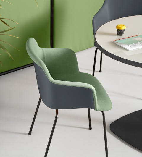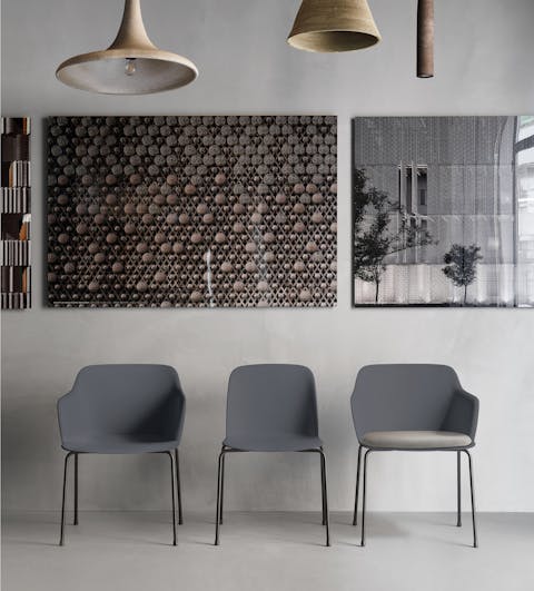 The model DEEP PLASTIC BIO is available in charcoal grey (since February 2023) and can be orderd with a wide range of structures, with or without armrests.