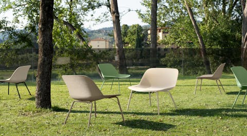 Wide and comfortable, the polypropylene shell is available in 4 colours inspired by nature, and it can also be put on multiple structures to create a product with a unique design.