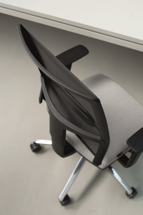 Operative armchair with wide dimensions and simple shapes. The mesh backrest is height adjustable and equipped with the up-down lumbar support and with the optional headrest the confort granted is elevated.