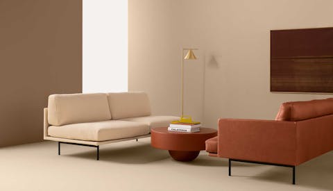 contract and office use. Large sizes, minimal aesthetic and wide range of upholsteries, they ensure originality and customization.