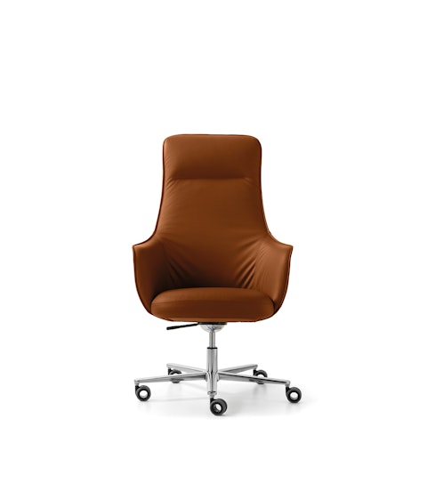 A collection of armchairs featuring generous, inviting shapes. The rounded armrests, which curve slightly outward, invite you to sit down, while the natural folds at the base of the backrest lend these armchairs an air of elegance and refinement, effortlessly embodying contemporary luxury.