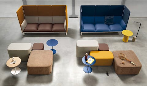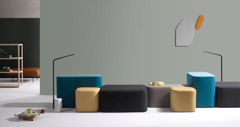 Collection of poufs, conceived for living and contract environments. Universal furnishing objects, customisable by choosing among the numerous finishings available.