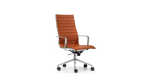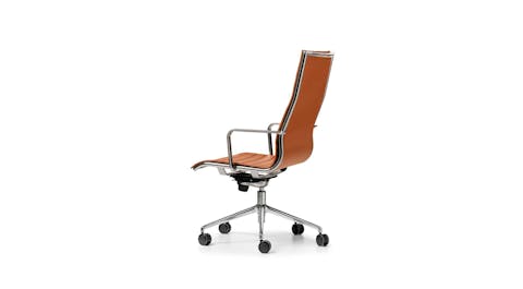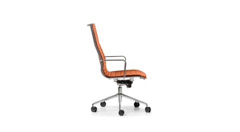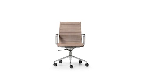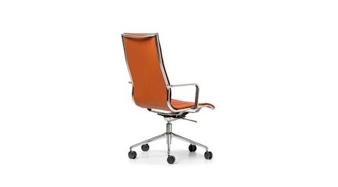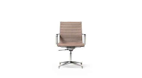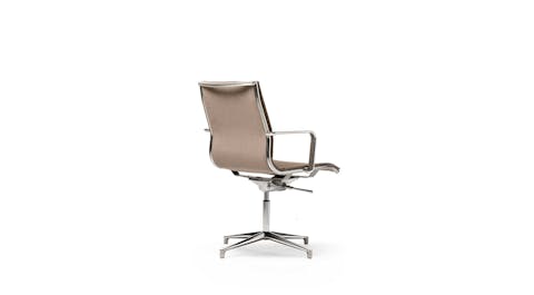 Comfortable and pleasing both to the touch and eye, the stitching makes each seat elegant and refined. The chair provides a 5 spokes base in aluminium. For the low backrest version there're alternative base, typical for the visitors chairs, such as the cantilever one. This model is one of our IN STOCK products (h. 72), both in its high backrest and in the low backrest version (with and without armrests).