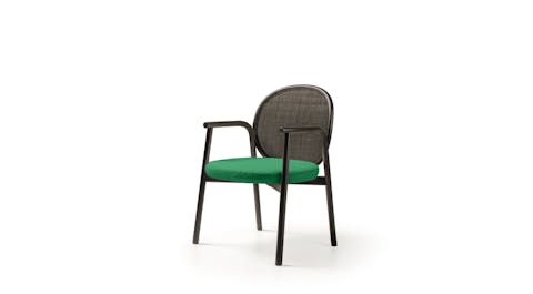 The structure in natural oak with a cozy shape is provided in natural finish or matt black painted with visible pore. It is also available in the total black version with black Vienna’s straw.