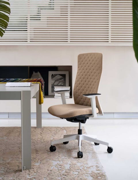 Made of 6 fabrics from the Chili folder, the Soft Cover back allows the use of lumbar support. Available with plastic frame in black or white finish the chair That’s It can be completed with various accessories such as armrests (fixed or adjustable), lumbar support and bases.