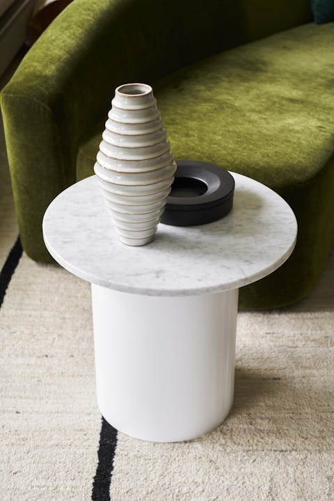 TTables are available in 2 different heights. The top is 50 or 60 cm, in black or white marble or in metal.