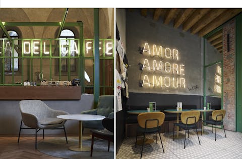 The young and genuine bar in Florence Ditta Artigianale, specialized in the production and sale of high quality coffee, has chosen Quinti's style to furnish its particular meeting spaces.