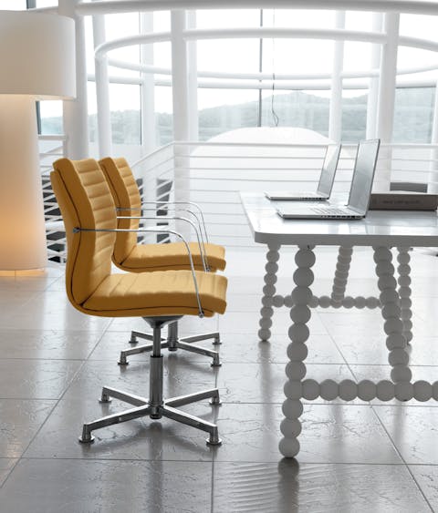 Come tutti i modelli Executive della collezione Quinti, anche questa sedia è disponibile sia con schienale alto che basso. Dispone di meccanismo oscillante M5 e base Trend a 5 razze in alluminio. I braccioli sono in alluminio e possono essere ordinati anche rivestiti.
