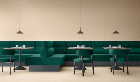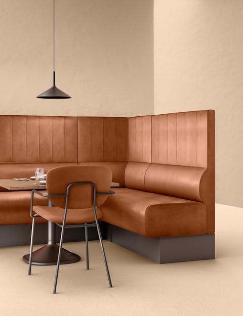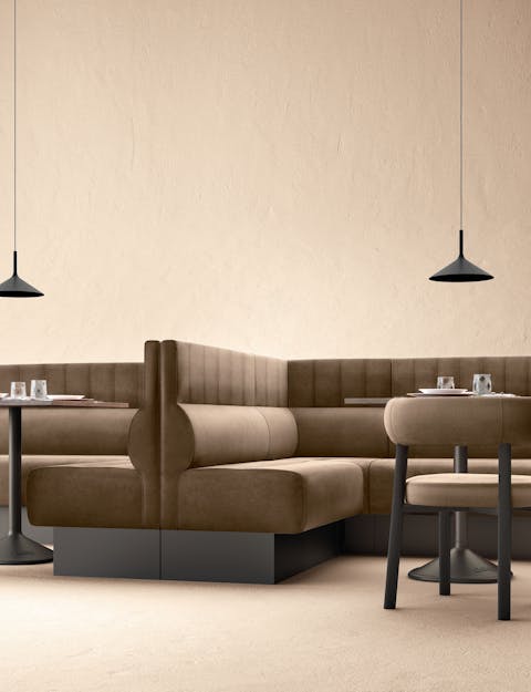 Sistema di panche caratterizzato dallo schienale ergonomico con cuscino a supporto dell’area lombare per un comfort ai massimi livelli.