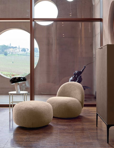 HILL, poltrona pouf, e divano, una collezione dalla forma retrò e dal design minimale può essere rivestita con una ampia gamma di tessuti ed ecopelli o pelli. Si può acquistare con o senza schienale (versione pouf)
