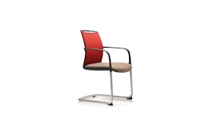 Poltroncina cantilever realizzata sempre con sedile rivestito e schienale in rete, facilmente combinabile con tutti i prodotti Quinti.