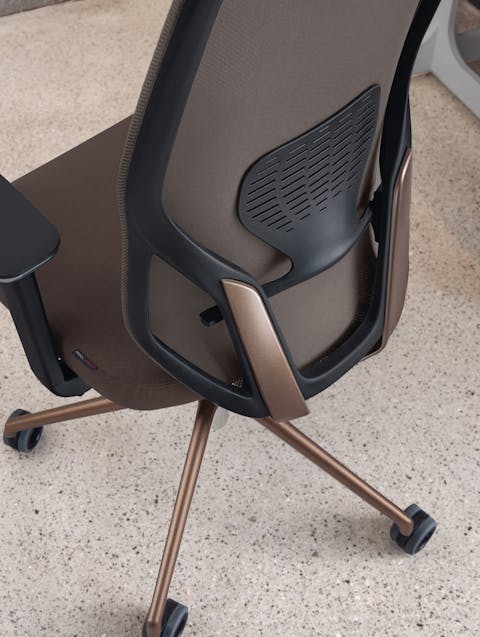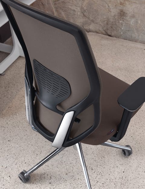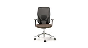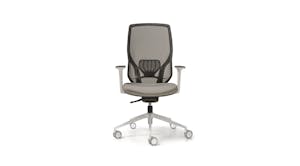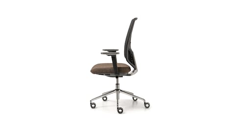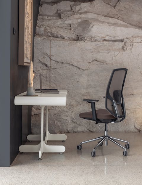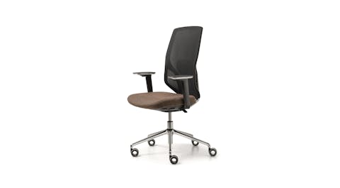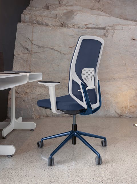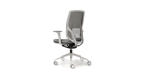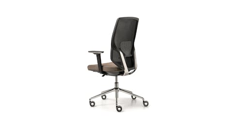 Sedia manageriale caratterizzata dall’originale design dell’elemento in alluminio che unisce il sedile allo schienale. Questo accoglie una rete spessorata ed è dotato di un ampio supporto lombare regolabile che offre agli utenti un’esperienza di comfort personale ai massimi livelli operativi. Disponibile con struttura in colore nero o bianco.
