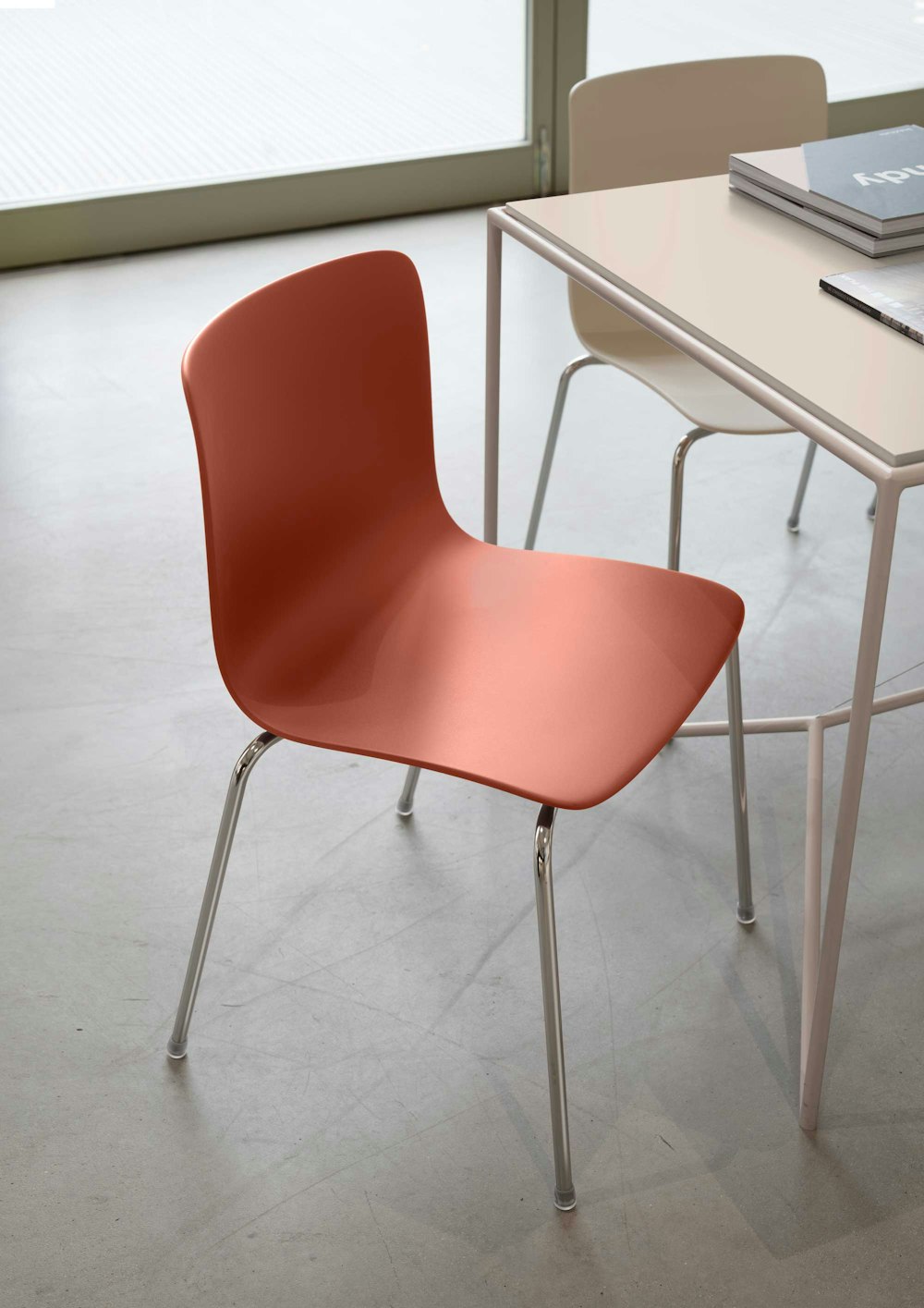 Una seduta senza limiti capace di accompagnare in modo discreto le esigenze degli spazi collettivi e privati.