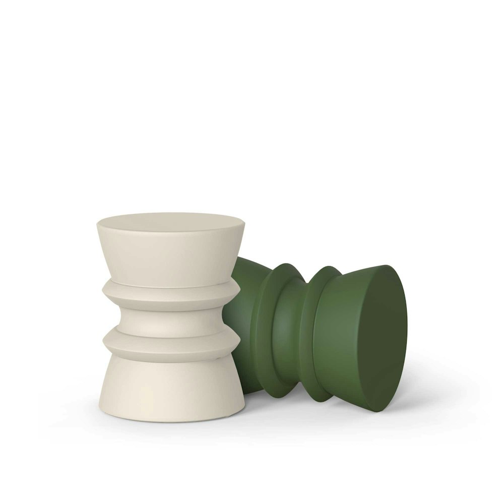 Tavolo sgabello in poliuretano rigido verniciato. La forma originale lo rende un pezzo d’arredo decorativo unico nel suo genere.