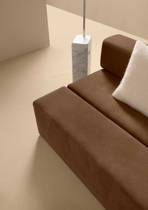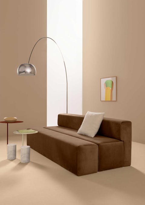 Divano di design versatile e contemporaneo si adatta alle esigenze degli spazi trasformandosi all’occorrenza in una panca doppia.