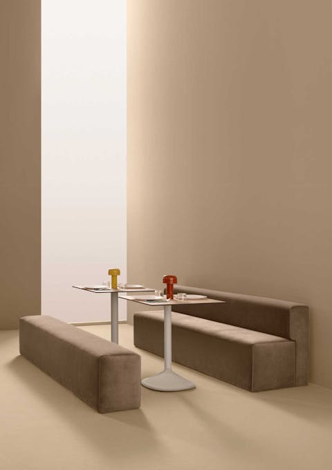 Divano di design versatile e contemporaneo si adatta alle esigenze degli spazi trasformandosi all’occorrenza in una panca doppia.
