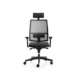 La sedia monta un meccanismo M12 Synchron e dispone di supporto lombare regolabile. La base può essere in polipropilene nero o in alluminio lucido, 5 razze. - EN 1335A, CLASSE A- Questo modello è in incluso nel nostro listino STOCK (H. 72)