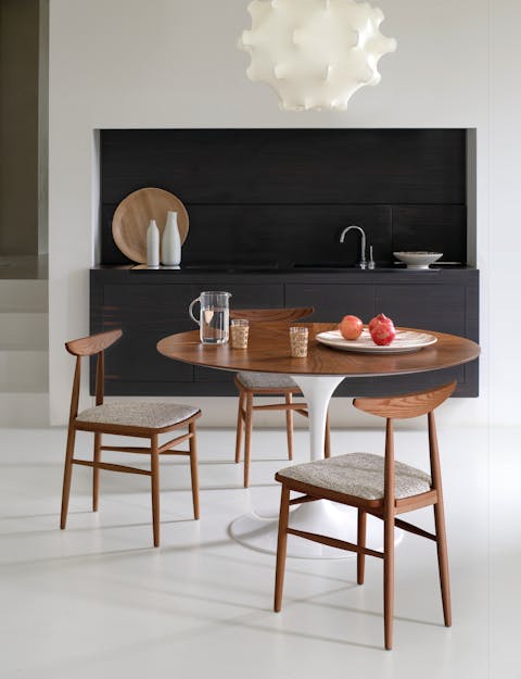 Timeless grazie alla sua forma morbida e sinuosa si integra alla perfezione con ogni arredamento dallo stile naturale e moderno. La struttura ampia e il suo ingombro ridotto favoriscono il suo inserimento nelle zone pranzo di abitazioni private o contract.